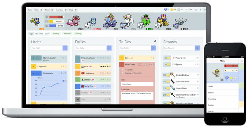 Neben der Webseite gibt es auch entsprechende Apps für Android und iOS, welche HabitRPG vom Smartphone aus nutzbar machen.