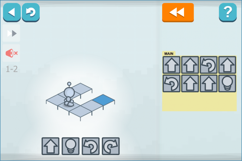 Viele Menschen tun sich mit dem Programmieren schwer. Damit das nicht so bleibt kann man sich mit Lightbot spielerisch dem Thema nähern. Bei dem Spiel geht es darum die Figur auf bestimmte Felder zu dirigieren und dort das Licht anzustellen.