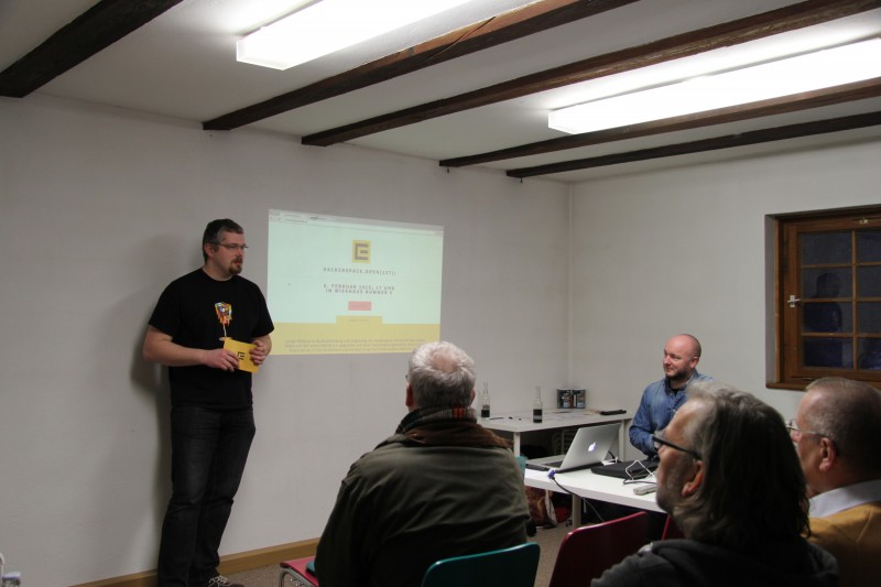 In meiner knapp fünf Minuten langen Ansprache ging es unter anderem um unsere Vision, den Start des 127 Tage langen Countdowns (welcher auf bootstrapping.entitaet.org bewundert werden kann), in welchem wir jedem Interessierten die Möglichkeit geben wollen, sich aktiv in die räumliche und organisatorische Ausgestaltung des Hackerspaces einzubringen. Zu diesem Zweck wurde unter anderem ein regelmäßiges Treffen, ab dem nächsten Freitag von 16 – 19 Uhr im Hackerspace angekündigt. Nach der Ansprache begann der Vortrag von Uwe Lübbermann zum Thema Wirtschaft hacken.