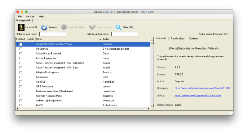 Im Normalfall müssen diese Mods von Hand installiert und aktualisiert werden, was natürlich einen gewissen Aufwand bedeutet. Mit dem Comprehensive Kerbal Archive Network kurz CKAN wird einem dieser Aufwand abgenommen. Bei dem CKAN handelt es sich um einen Paketmanager für Kerbal Space Program Mods, welcher für Linux, Mac OS X und Windows bereitgestellt wird. Bezogen werden kann er über die Release-Seite des GitHub-Repositories. CKAN ist unter der MIT-Lizenz lizenziert und damit freie Software.