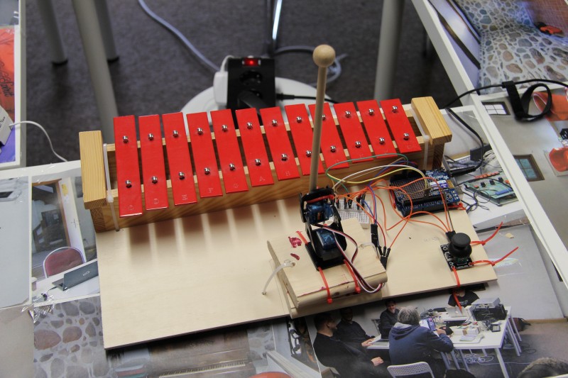 Im Rahmen des Neubrandenburger Hackerspaces und eines kürzlichen Standes auf dem Marktplatz, waren wir auf der Suche nach einigen Dingen, die man auf diesem Stand ausstellen konnte. Nachdem wir im E5 mit einigen Arduinos und Servomotoren experimentiert hatten, kam mir die Idee zu einem automatischen Xylophon.