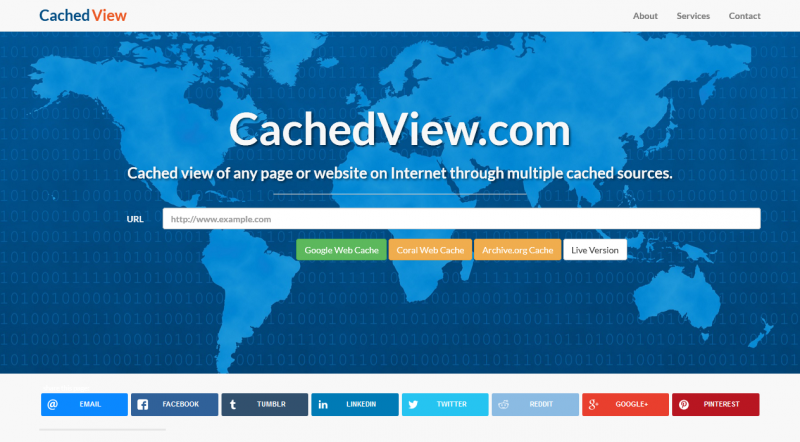 Ist man nun auf der Suche nach einer bestimmten Webseite, so kann man die einzelnen Caches natürlich einzeln abklappern. Eleganter funktioniert dies mit CachedView – dort gibt man die gesuchte URL ein und durchsucht damit gleichzeitig den Google Cache, das Webarchiv von Archive.org und den Coral Cache. Zu Finden ist CachedView unter cachedview.com.