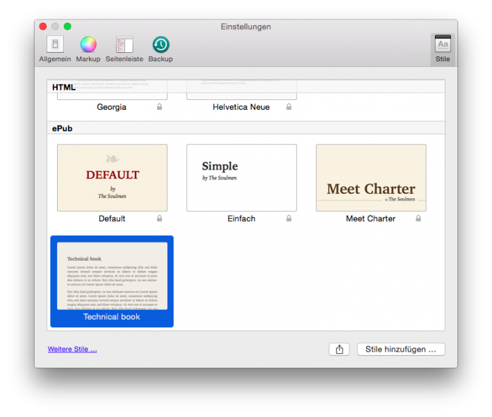 Die Style-Verwaltung von Ulysses unter Mac OS X