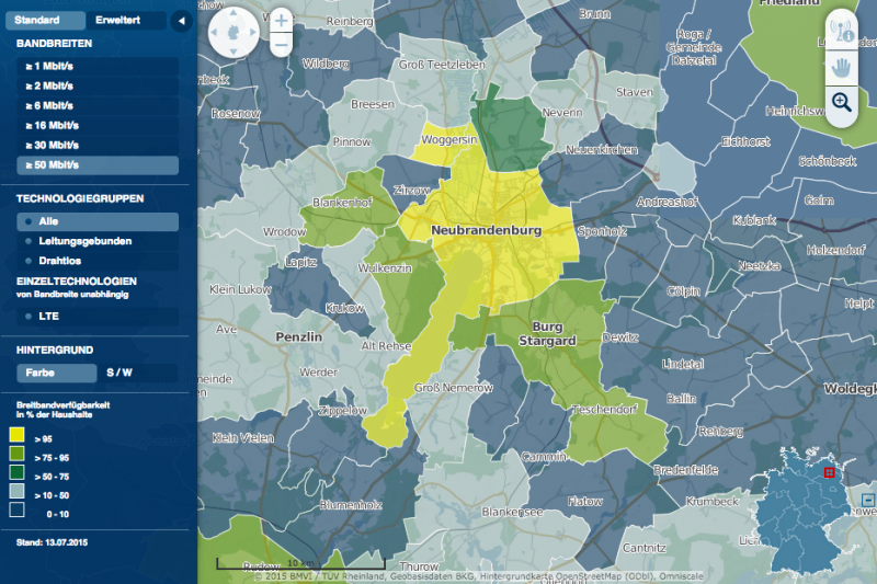 Vor ein paar Tagen war ich für eine bestimmte Region auf der Suche nach den angebotenden Breitbandanschlüssen. Fündig geworden bin ich schlussendlich beim Breitbandatlas, welcher vom Bundesministerium für Verkehr und digitale Infrastruktur angeboten wird.