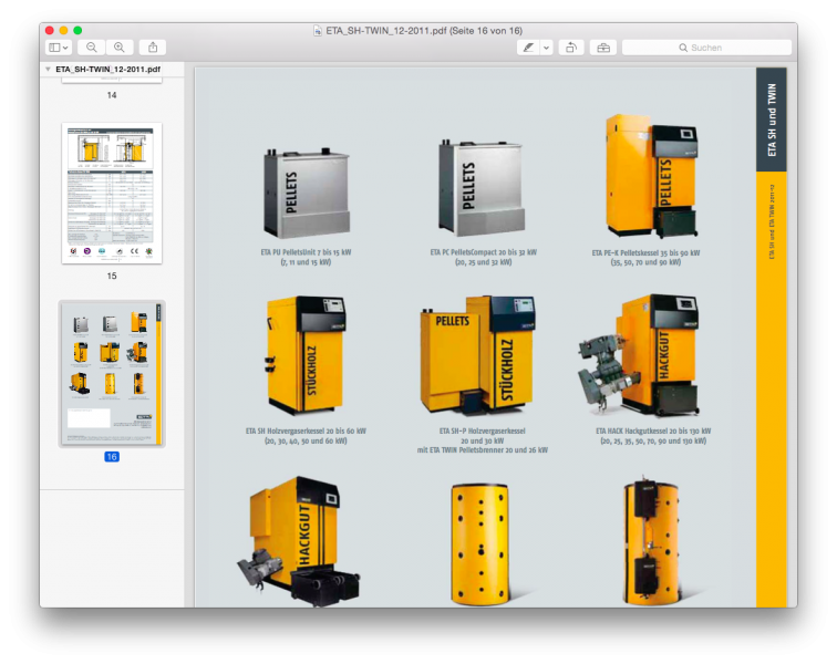 Dazu muss im ersten Schritt die Ansicht auf Miniaturen gestellt werden. Nun kann die PDF-Datei welche hinzugefügt werden soll, in die Miniaturen-Ansicht hineingezogen werden – sie wird dann an der entsprechenden Stelle eingefügt. Wichtig ist es dabei das die PDF über dem Trennstrich, welcher sich am Ende der Miniaturen befindet, hinzugefügt wird. Nun kann die PDF über das Ablage-Menü exportiert werden und damit erhält man die gewünschte PDF in welcher die unterschiedlichen PDF-Dateien zusammengefügt sind.