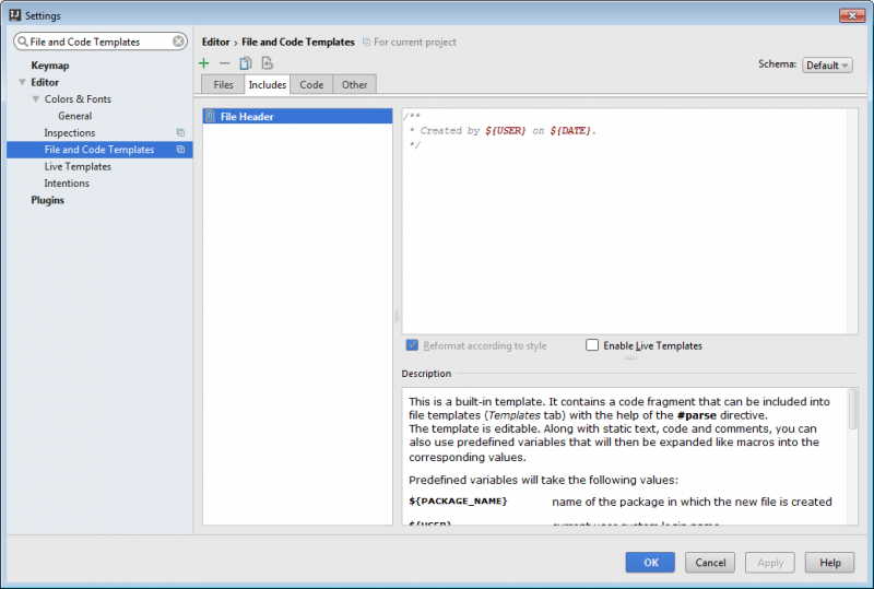 Wenn man in der IDE Intellij IDEA von JetBrains eine neue Java-Klasse erzeugt, so wird ein entsprechender Header erzeugt, aus welchem hervorgeht, wer genau diese Klasse angelegt hat. Zum Abschalten des Verhaltens müssen die Einstellungen geöffnet werden.