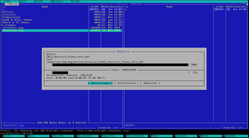 Wenn man Dateien mit dem Midnight Commander von A nach B kopiert kann es passieren das man mit der Fehlermeldung:
