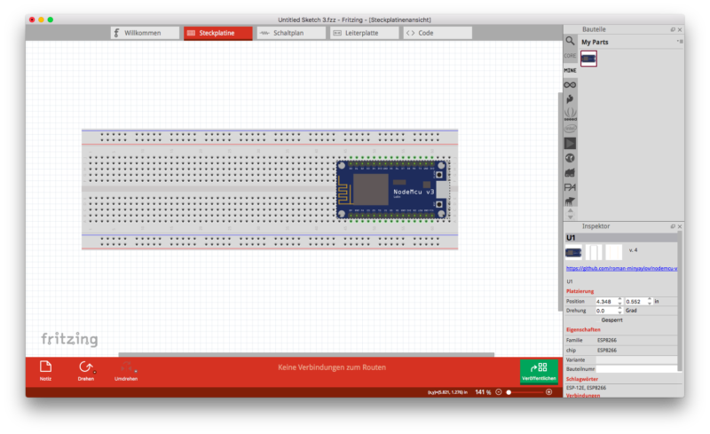 Das NodeMCU Bauteil wurde Fritzing hinzugefügt.