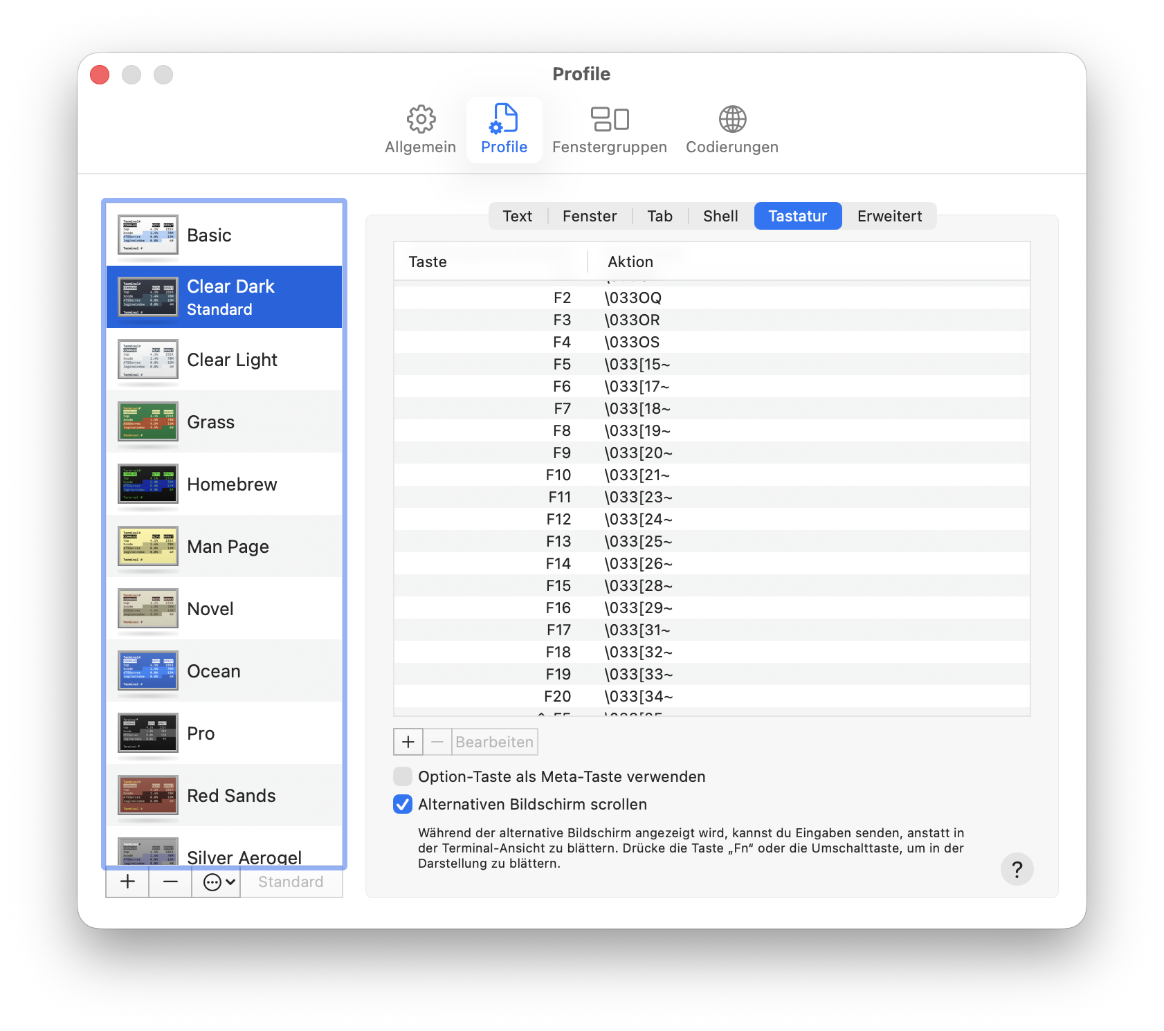 Dort findet sich unter Profile und dem Tab Tastatur der Punkt Option-Taste als Meta-Taste verwenden. Wird dieser deaktiviert, funktioniert das At-Zeichen auch im Terminal wieder.