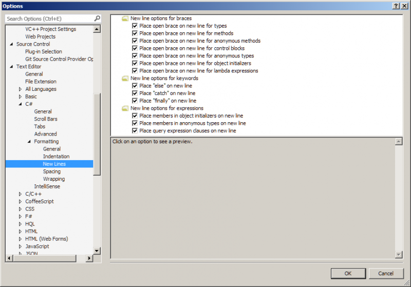 Die Formatierungseinstellungen im Visual Studio